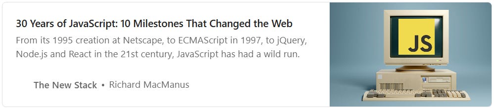 JavaScript is 30 years old, which is still less than my age, so it still has things to learn. What do you think were its 10 milestones that allowed it to survive to this day? I got into it somewhere between milestones 3 and 4.