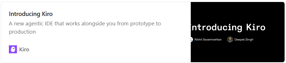 We have a new AI agentic IDE called Kiro. It's different because instead of prompting, you create specifications and hooks. Specifications allow you to define what you want the application to do, and hooks verify the functionality of the solution.