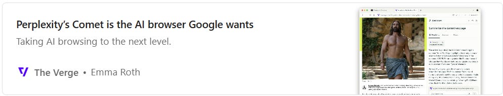Microsoft has had a Copilot button in Edge browser for some time, but it's only for manual activation (for now?). Perplexity is launching the Comet browser, which beyond traditional features like summarization and content questions, can also handle task automation.