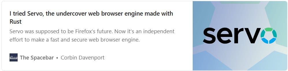Servo is an independent web browser engine written in Rust. It's still in development, and we can be happy that Chrome will have at least some competition.