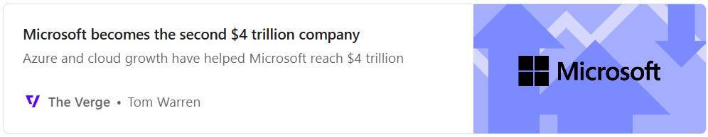Two weeks have passed and Microsoft has also crossed the $4 trillion valuation mark. This was helped by excellent financial results for the last fiscal year. Azure saw the biggest increase, growing at such a pace (34% year-over-year) that it could catch up with Amazon cloud in about 4 years. Currently, it's $75 billion in revenue for Azure versus $111 billion for AWS.