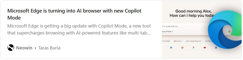 Microsoft Edge is getting agent mode. Agent doesn't mean you'll become a secret agent. Agent means Edge will be able to compare products from multiple tabs, remove distracting elements from pages, and you'll get voice control options. It's currently free and you need to manually enable it.