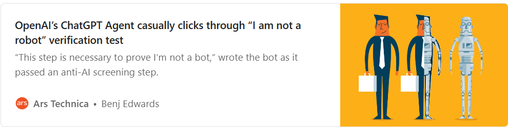 CAPTCHA's job is to keep robots away from your site. But try explaining that to AI agents that will click it for you anyway. ChatGPT Agent handles it perfectly.