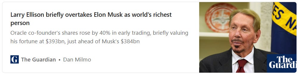 Larry Ellison has become the world's richest person, primarily thanks to owning 41% of Oracle's shares, which have surged in market value. This stock growth is driven by Oracle's massive investments in server infrastructure, particularly for AI computing. Oracle is likely to become OpenAI's new technology partner.