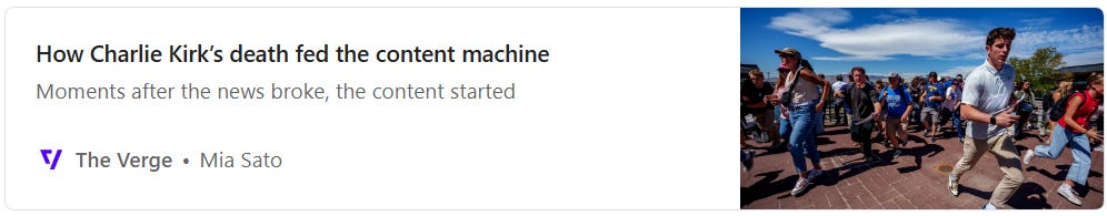 But times are changing with the rise of social media. While visual content used to be filtered by what was appropriate for TV screens, today's unmoderated social platforms show everything. That's why I was shocked when someone sent me a link asking, "Have you seen this yet?" After clicking, I was confronted with a video of a recent murder of an American conservative - just like that, without warning. I needed time to process it, because such content used to come with warnings at the very least. Today, even death has become regular content. Yikes!