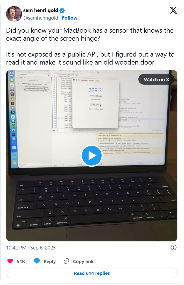 Did you know MacBooks have a sensor that can detect how far open your MacBook lid is?