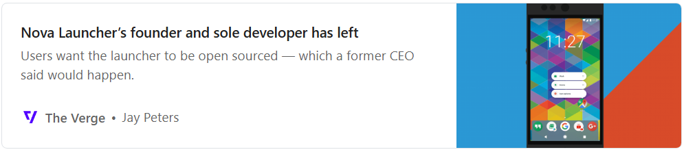 The most popular Android launcher replacement, Nova Launcher, has lost its last remaining developer working on open-sourcing it. This was the agreement when Branch Metrics acquired the launcher in 2022, in case its original creator left the project.