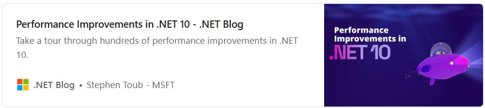 The traditionally super-long post about performance improvements in .NET 10. There's a lot you'll get by upgrading to .NET 10.