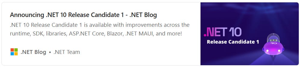 The first .NET 10 RC candidate is out. This release focuses on final tuning - don't expect new features.