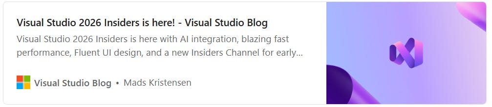 Visual Studio 2026 Insiders version is coming. You'll get lots of interesting features: AI-integrated profiler that definitely won't miss things you would, many speed improvements, and a new look with 11 new themes to choose from. Plus, updates will arrive monthly.