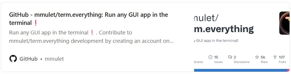 Sometimes you need to run a GUI application in Linux but only have SSH access. Term.Everything can solve this problem by rendering GUI applications in the console using UTF-8.