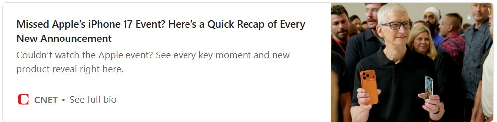 It's that time of year when Apple unveils better, faster, prettier phones with even better cameras than last year. This year, they also showcased the Air model, which is ultra-thin except for the camera bump. I have to admit, finally a phone that won't look like a brick with a protective case on. We also got the new AirPods Pro 3, featuring the best noise cancellation these earbuds have ever had. Oh, and I almost forgot about the watches - the premium Ultra 3 lasts two days on battery and can make satellite calls without issues. The cheaper SE 3 has all the health sensors of the pricier models, just in a more affordable package.