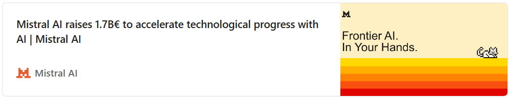 European AI company Mistral AI received a €1.7 billion investment from ASML, the European manufacturer of semiconductor production equipment.