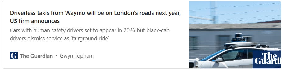 Waymo robotaxis should hit London’s streets next year. I have strong opinions about this. On one hand, I enjoy the feeling of driving; on the other, public transportation is more efficient. Instead of robotaxis, we need more robo-public-transit.