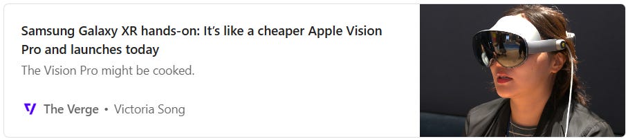 Samsung unveiled the Galaxy XR with similar specs to Apple Vision Pro but at half the price. Unlike Vision Pro, it has a Netflix app, is lighter, and has comparable battery life.
