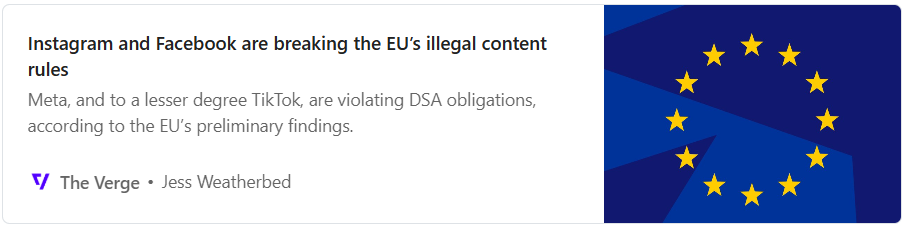 Meta and TikTok face EU sanctions up to 6% of annual revenue for not complying with the DSA (Digital Services Act).