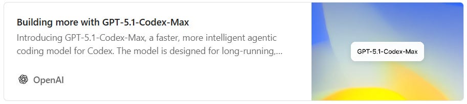 To avoid looking bad compared to Gemini 3 Pro, OpenAI released the new GPT 5.1 Codex Max model.