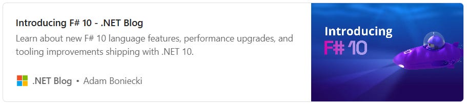 .NET 10 didn’t just bring C# 14 features. F# also got updates with the new version 10. I won’t pretend I understand them all, but here’s the link.