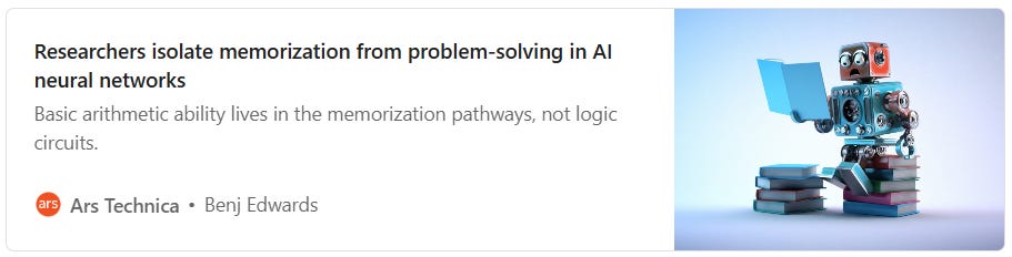 The following link slipped through my list last week. Researchers managed to remove memory from AI models, isolating pure reasoning. This is useful when you want to process input without memory data influencing it.