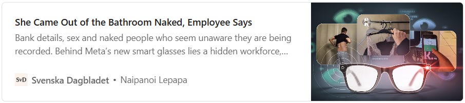Privacy falls under security too. If you own Meta AI Smart Glasses, be mindful of when and where you wear them. You might unknowingly end up in a review program where contractors — located in Africa — are asked to evaluate whether the AI model in the glasses correctly classified what it saw.