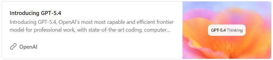 Two days later, GPT-5.4 arrived, integrating GPT-5.4 Codex and tool use to close the gap with Opus 4.6. According to benchmarks, it managed to reach roughly the level of Opus 4.5 — still a solid result. Beyond coding improvements, the biggest gains are in working with documents like Word and Excel.