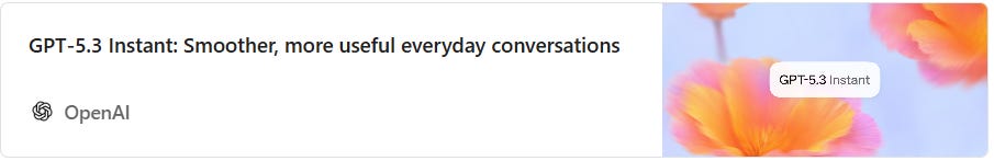 OpenAI released two models in quick succession. First came GPT-5.3 Instant, focused on improving everyday conversations.