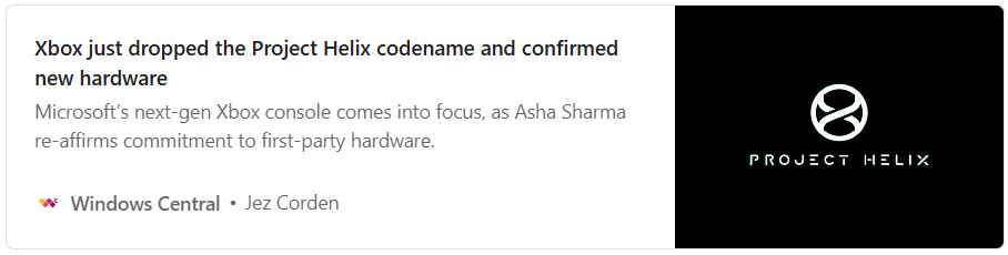 Xbox revealed the codename for its next-generation console: Project Helix. It will use an AMD chip and operate as a hybrid system that can also function as a traditional PC. AI integration is included, of course.