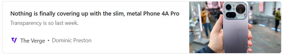 Nothing didn’t announce a new flagship fourth-generation model — apparently there was no reason to. Instead, they introduced the 4A and 4A Pro. The Pro in particular looks like a phone you can carry without a case, thanks to its metal back panel.