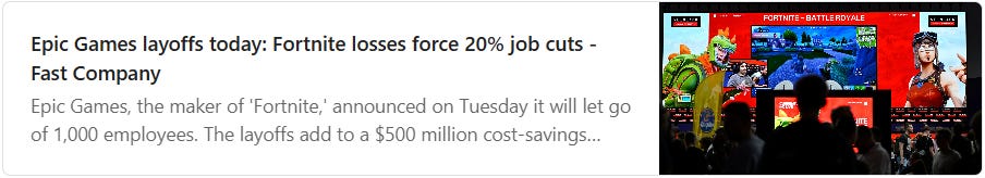 Epic Games has also announced layoffs, as Fortnite no longer drives revenue the way it once did.