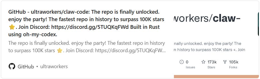 Interesting clones have already appeared — including Claude Code rewritten in Rust and Python specifically so Anthropic can’t take them down via DMCA.