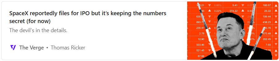 SpaceX — which recently merged with xAI, which had itself merged with X (Twitter) — is heading for a public offering. The expected valuation is an astronomical $1.75 trillion, which could make it the largest IPO in history.